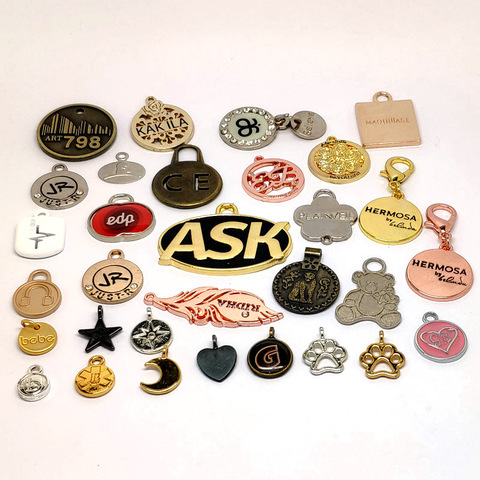 Fabricante de Custom Zinc Alloy Logo Tags Luxo Moda Metal Pendurar Tags para Sacos Vestuário Sapatos Chapéus Placas de identificação Decorativas