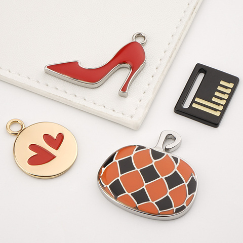 Rose Gold Circle Metal Hang Logo Tag Custom Metal Logo Loop para pendurar Acessórios para sacos Special Bag Parts Acessórios